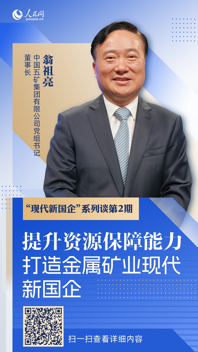中國五礦黨組書記、董事長翁祖亮7月27日接受人民網“現代新國企”節目訪談,圍繞“提升資源保障能力,打造金屬礦業現代新國企”主題同網民在線交流。